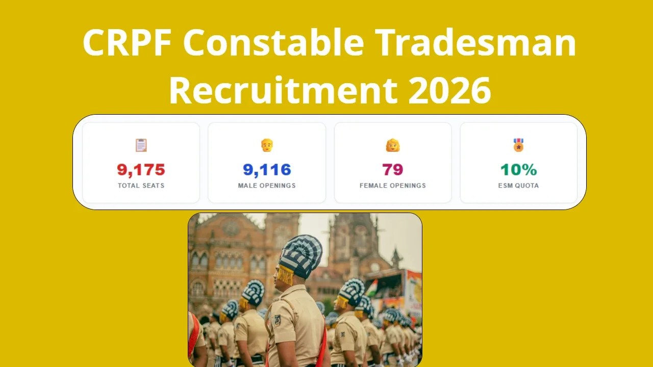 CRPF Tradesman Recruitment Open 9,175 Seats for 2026 — Apply Window Now Live