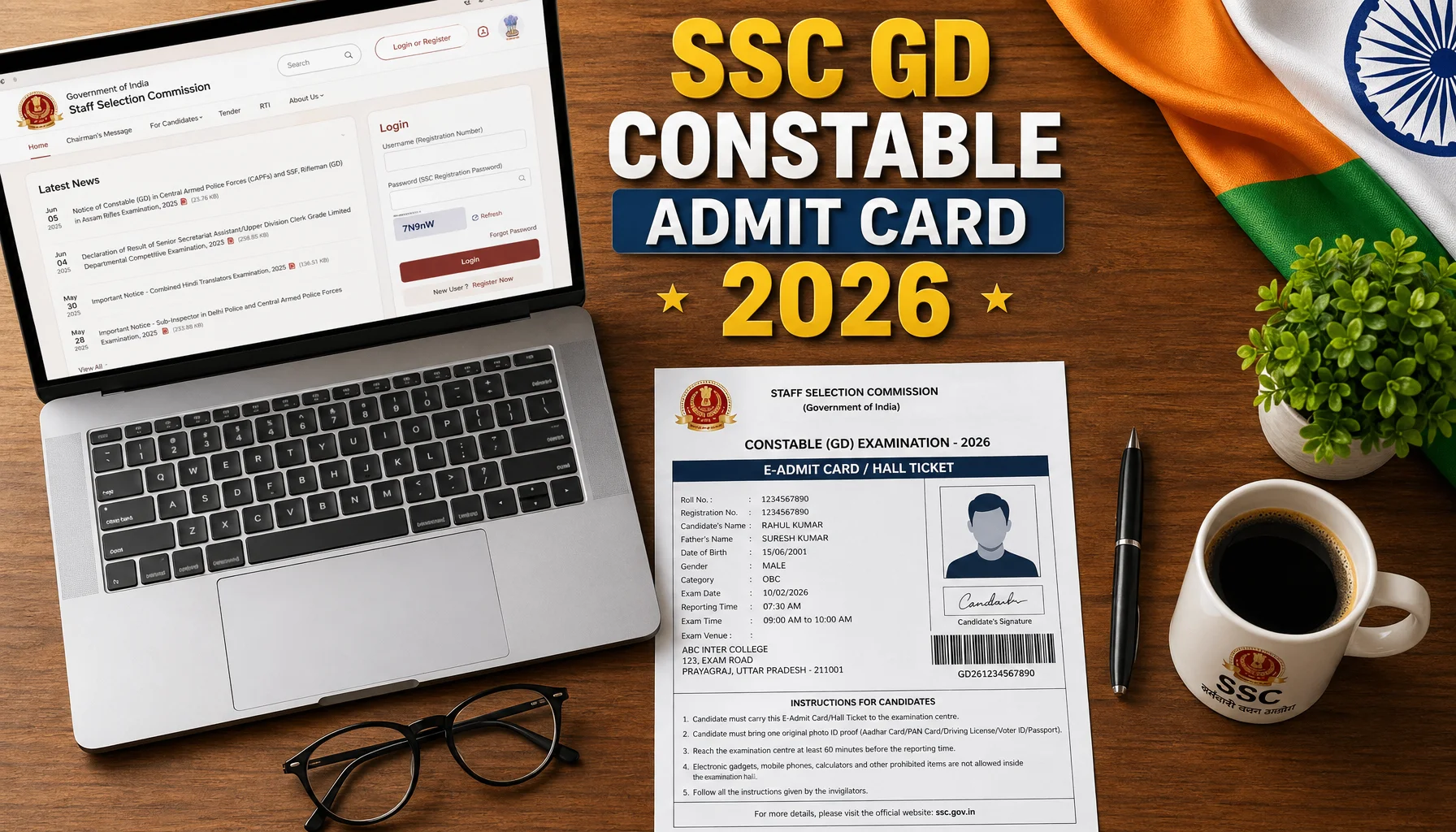 The Staff Selection Commission (SSC) has officially uploaded the much-awaited SSC GD Constable Admit Card 2026 on its official portal at ssc.gov.in. Aspirants who successfully submitted their applications for the General Duty Constable recruitment can now log in and retrieve their e-hall ticket in PDF format. The Tier 1 Computer Based Test (CBT) is set to begin on 27th April 2026 and will continue till 30th May 2026, covering examination centres spread across the country.